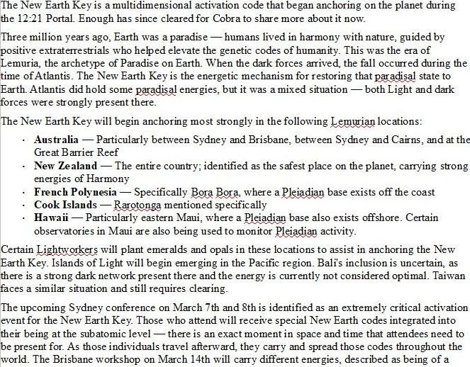 After March 7th, the New Earth key will start being actively anchored on the surface of the planet, as you can see from this excerpt of the Phoenix Ascension workshop notes: