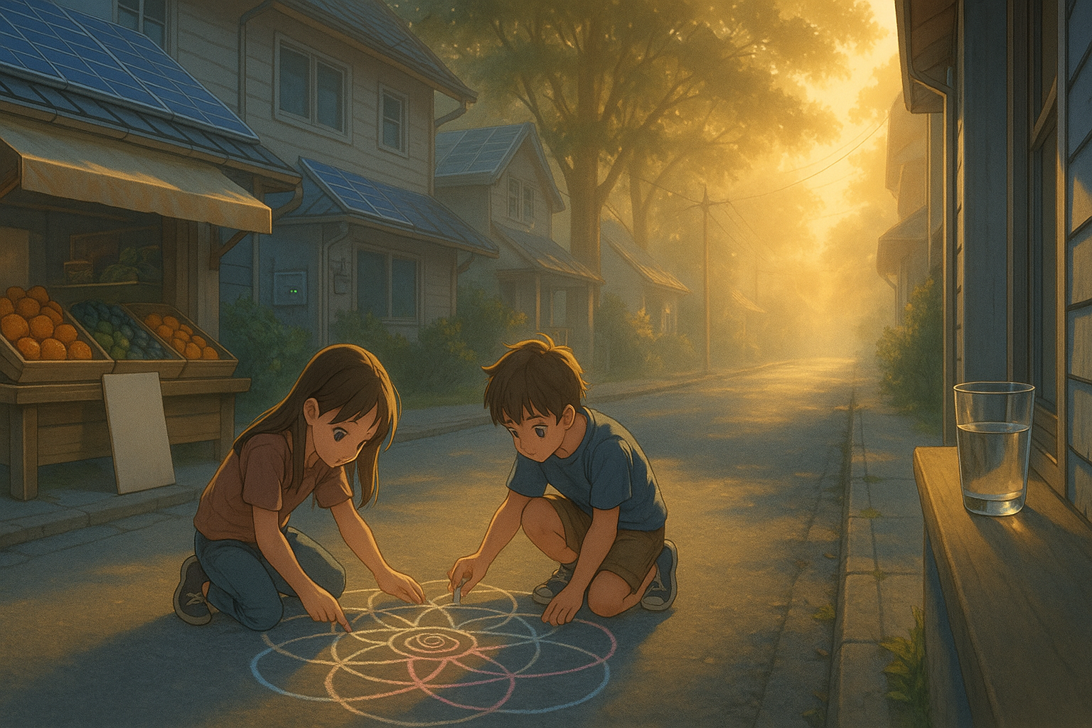 窗外传来笑闹声。我穿上外套向窗外看去,几个孩子蹲在路边,用粉笔在地上画圈圈,他们画的是一朵巨大的花,花心是一个旋转的几何图形,像是我在简报里提过的「光网结构」。对街的水果摊早就开张,老板把价目牌翻过来,贴上一张新标签:「今日折扣,谢谢大家彼此照顾。」过去那种连几毛钱都舍不得抹去的细节规矩不见了,他们现在会主动把零头捐进社区互助箱。你看得出来,某些旧规则已悄悄改变了。